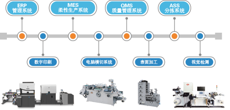基于ERP系统、柔性生产EMS系统、数字印刷系统、智能化印后加工系统、分拣物流系统实现标签(商标、铭牌、标识)产品的按需印刷、即时交货,真正实现供需双方均无库存。